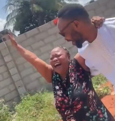 The emotional encounter was documented by the son, @sammydave87 on TikTok, as he awaited his mother’s emergence from their home.