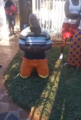 He was captured in a video kneeling and begging for forgiveness while surrounded by a group of people. The South African Police service was seen standing by.