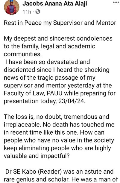 According to reports, Kabo was doing his sabbatical leave at the Taraba State University Jalingo.
