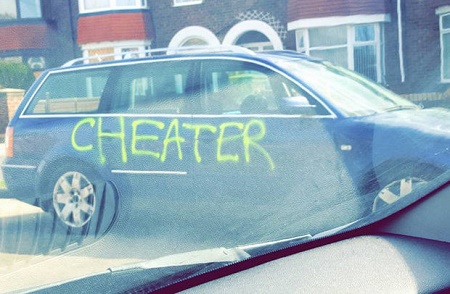 One of the cheated lovers decided to take revenge by daubing the words "cheater", "liar" and "LOL" all over his Volkswagen Passat Estate in Hull.