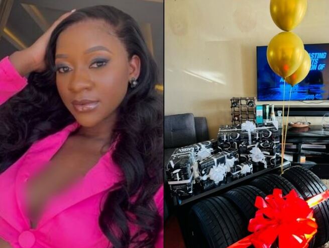 The photos she shared showed that she got her boyfriend a complete set of car tyres, tied together with a red ribbon to give it a nice look.