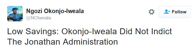 Low Savings: Okonjo-Iweala Did Not Indict The Jonathan Administration