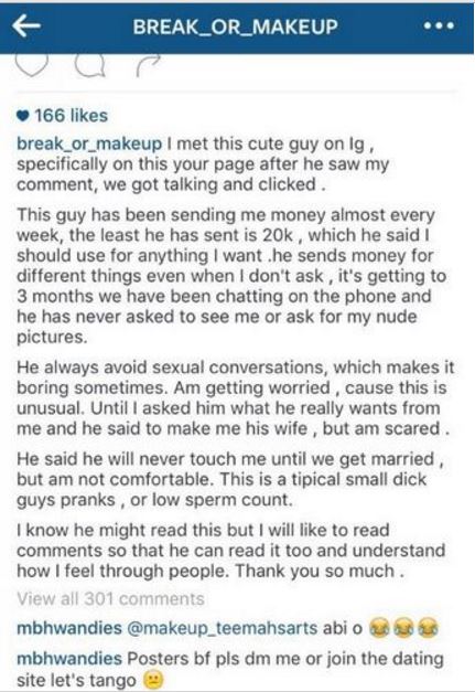 However, when she noticed some things about the guy, she sent the page her story, asking for advice.