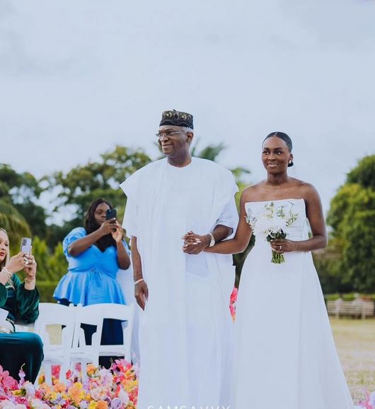 Yewande, the daughter of Babatunde Fashola, a former governor of Lagos State, has gotten married to her partner, Posi Ogunlesi.