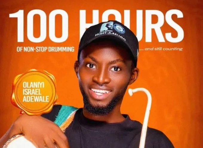 A student at the Federal University, Oye-Ekiti (FUOYE), identified as Olaniyi Israel Adewale, is trying to set a 150-hour world record for the longest drumming marathon by an individual.