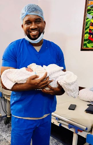 A video he showed shows him in maternity garb as he carried his newborn infant, and thanked God for the successful delivery of his child.
