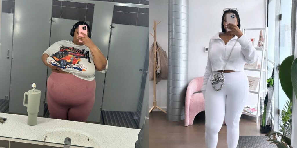 “1 yr ago today I decided to put myself first and take my health seriously! 196lbs gone forever 🥹💖