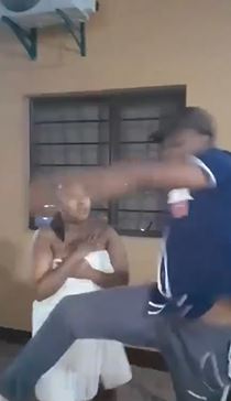 The alleged lover, also seen in the video, attempts to defuse the situation by pleading with the husband to allow him to leave peacefully.