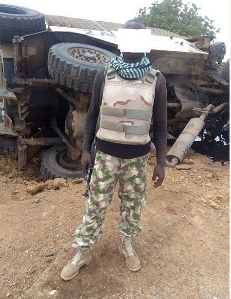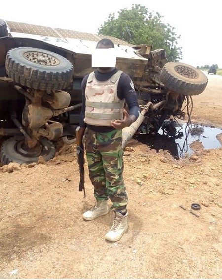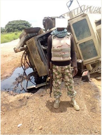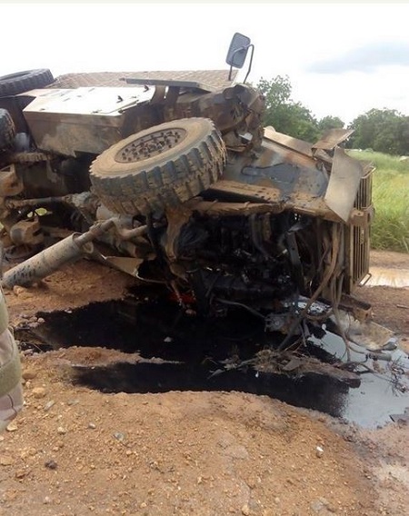An Armoured Personnel Carrier (APC) belonging to Nigerian soldiers was hit by an Improvised Explosive Device (IED) during clearance operation in the northern part of the country as depicted in the pictures.