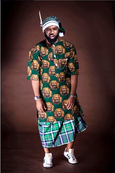 Popular Lagos fashion icon, Noble Igwe, has been trailed by mixed reactions and criticisms after rocking an Adidas sneakers on a traditional native attire.