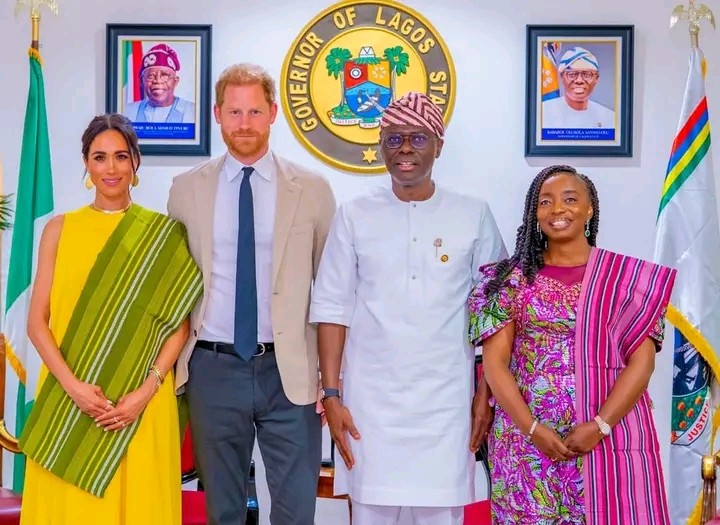 Lagos State Governor, Mr. Babajide Sanwo-Olu has hosted the Duke and Duchess of Sussex, Prince Harry and Meghan Markle.