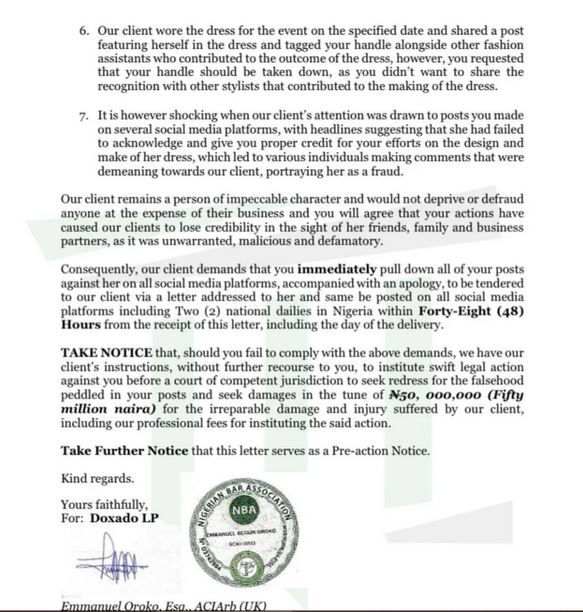 Although the Ghanaian fashionista has not commented publicly on the matter, she chose to speak via her lawyers who served the designer a cease and desist letter.