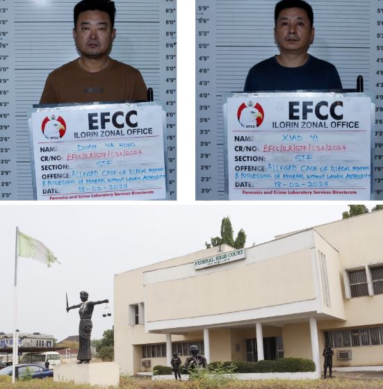 Two Chinese Nationals, Duan Ya Hong and Xiao Yi, have been arraigned and convicted for their involvement in illegal mining in Kwara State.