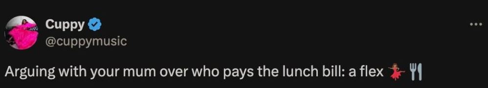 “Arguing with your mum over who pays the lunch bill: a flex 💃🏾🍴,” she wrote in a post.