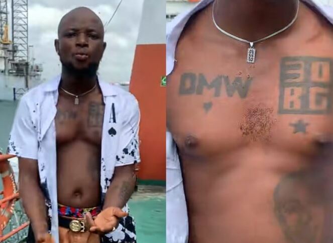 The young man permanently inked ’30BG’ and ‘DMW’—both label names of Davido—on his chest, while also drawing the singer’s face on his stomach.