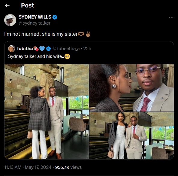 Reacting, Sydney Talker debunked the report, saying the lady in the pictures was his sister.