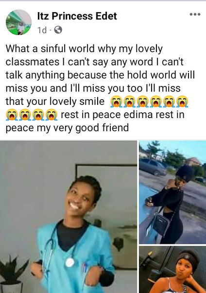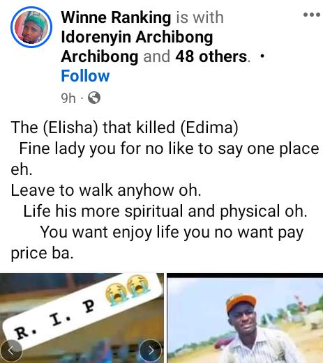 The lady who was killed by her boyfriend in Uyo, Akwa Ibom State has been identified as Edima.