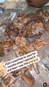 When he finally broke the piggy bank, he was heartbroken to see that most of the cash were already damaged.