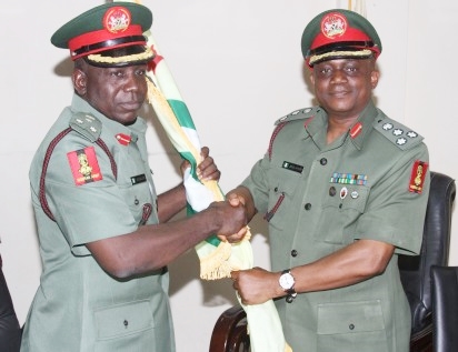 The Director General of the National Youth Service Corps (NYSC), Brig-Gen. Sule Kazaure and immediate past DG of NYSC, Brig-Gen. Johnson Olawumi