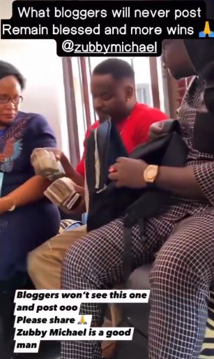 - Actor - Zubby Michael spotted giving bundles of cash to Jnr Pope's family.