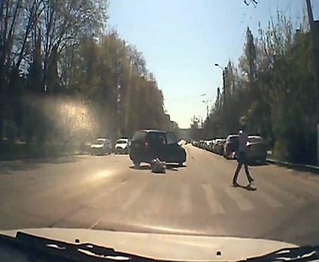 The scene was caught on the dash cam of a fellow driver in the city of Sevastopol in south west Russia.
