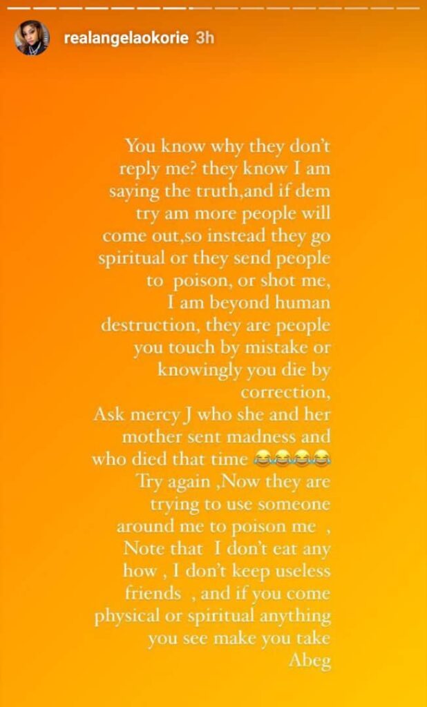 The actress in an Instagram post suggested that she is on the verge of exposing some of her colleagues who engage in relationships with married men