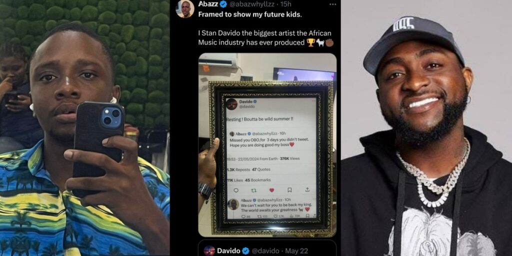 He went on to add that he would show this to his future kids. His statement: “Framed to show my future kids. I stan Davido, the biggest artist the African music industry has ever produced 🏆🐐✊🏿.”