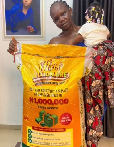A womman who purchased a bag of rice for N75,000 has staged a photoshoot due to the high cost.