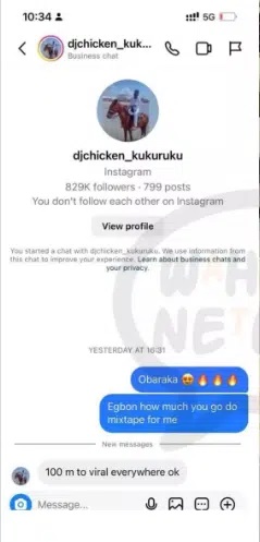 The DJ and TikTok influencer was recently contacted by a client who wanted a mixtape from him.