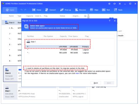 Step 2. Select the unallocated space on SSD as the destination location and then click “Next”.