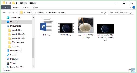 The recovery process takes several minutes. We open the recovered files to verify their integrity in their new location. The files were successfully recovered without missing anything.