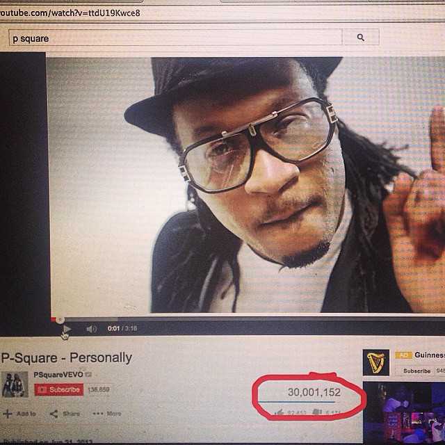 The African Duo P-Square was on the news again for breaking the record of most viewed video on YouTube by an African Artist. "Personally" video which was release last year now has over 30 million hits on YouTube making it the record holder for the most viewed video by an African Artist.
