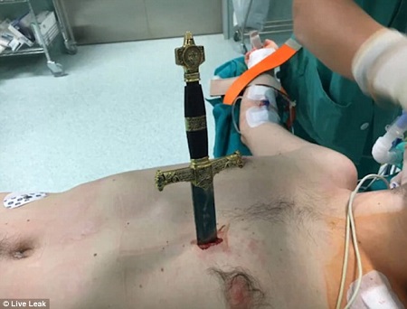 See the Shocking Moment Doctors Pulled Out a Sword from a Man's Chest After He Stabbed Himself (Photos+Video)