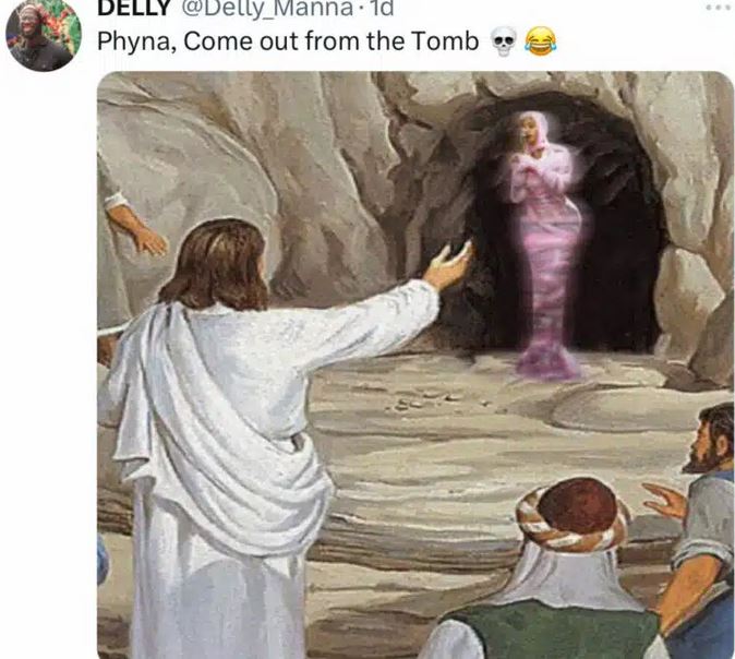 Phyna’s photo, which depicts her completely covered in pink fabric, has prompted analogies to Lazarus, a biblical figure that Jesus Christ raised from the grave.