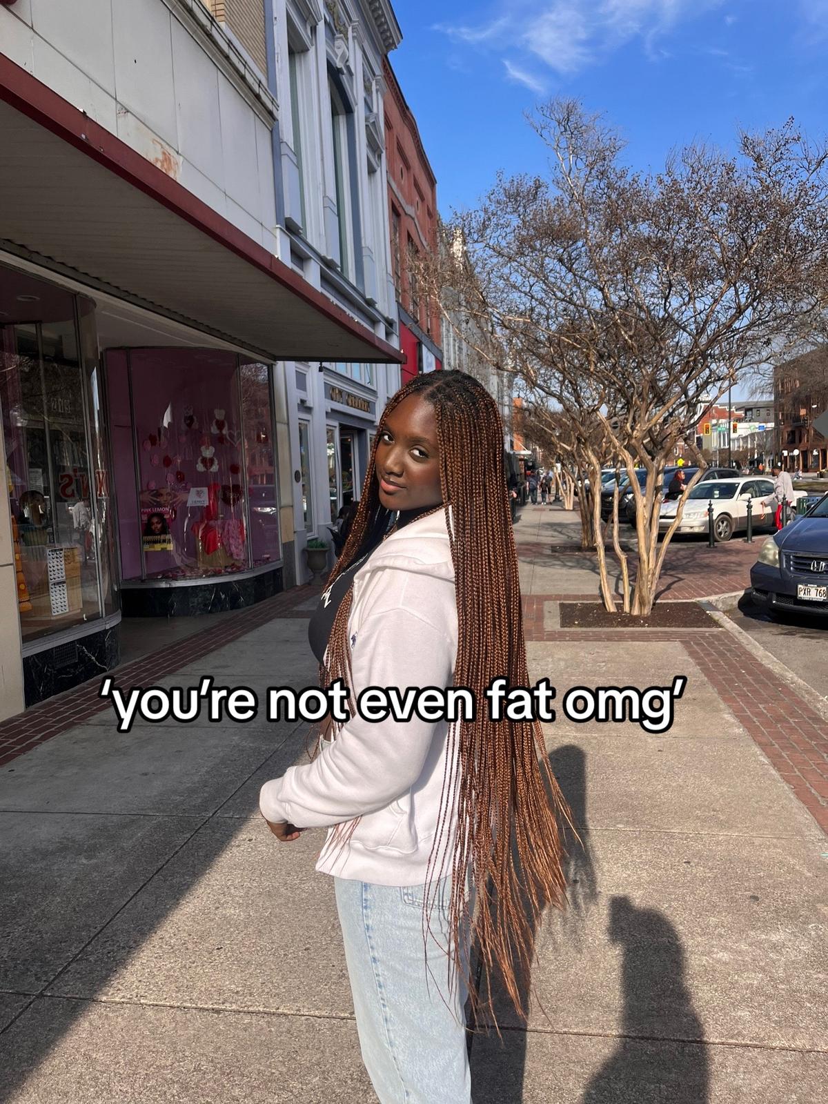 "Me after being body shamed by family, 'friends', and random," she wrote in one slide.