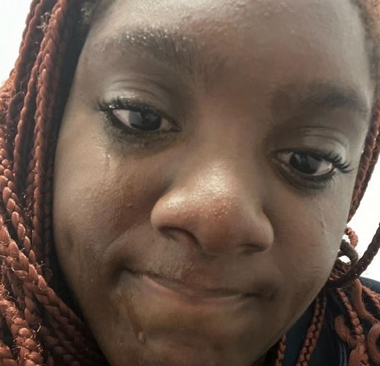 She had tears running down her face in the photos shared.