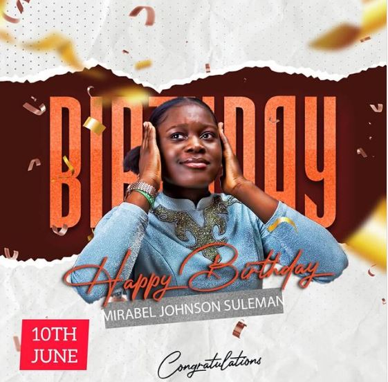 “Happy Birthday To My 4th Seed MIRABEL JOHNSON-SULEMAN May The Lines Fall Unto You In Pleasant Places. I Bless You With The Blessings Of Heaven And May You Continually Be A Beacon Of Hope. GOD Make You Great In Jesus Name. I Love You.”