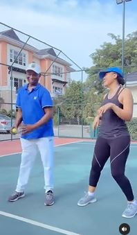 The actress took to Instagram to share the video from her family outing, where she, her co-wives, and stepchildren gathered at a tennis court to enjoy some sports together.