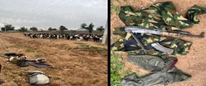 The troops neutralized one terrorist in the overwhelming firefight compelling the rest of the terrorists to flee abandoning one AK-47 rifle, a magazine with three rounds of 7.62 x 39 mm ammunition, two motorcycles, and 410 rustled sheep; which have been recovered by the troops.