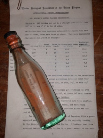 It was discovered by retired German postal worker Marianne Winkler while on vacation on Germany’s North Frisian islands, 108 years and 138 days after it was thrown into the North Sea off the English coast by the distinguished marine biologist George Parker Bidder on Nov. 30, 1906.