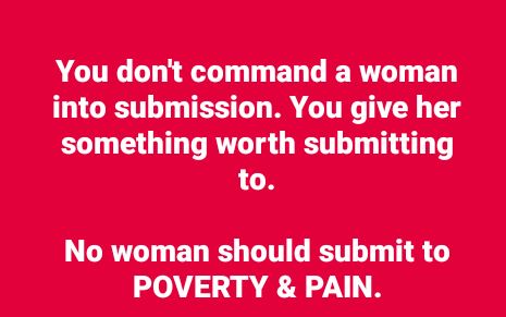 He explained that no woman should submit to pain and poverty.