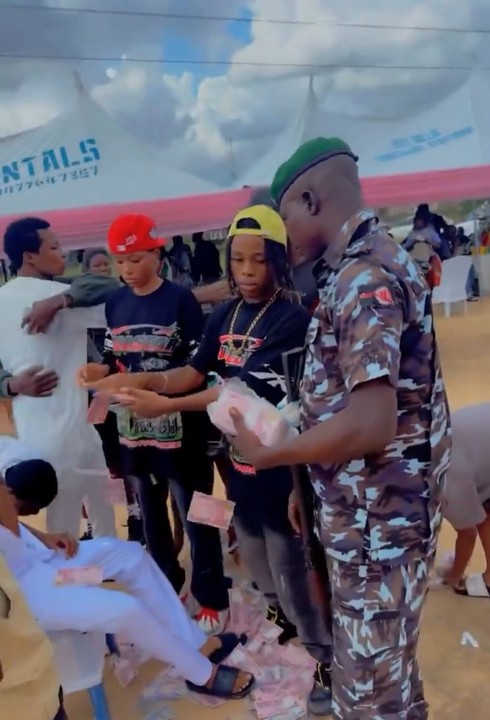 The Nigerian police has been called out after a police man was seen assisting a young man spray money.