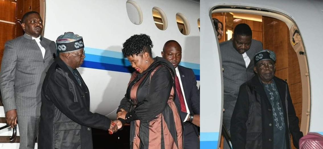 Tinubu reportedly left the Presidential Wing of the Murtala Muhammed International Airport, Ikeja, on a Dassault Falcon 8X aircraft around 11:06 am.