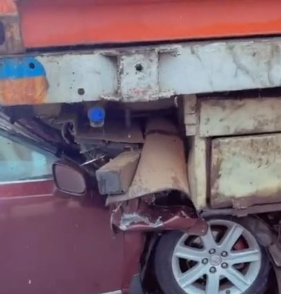 She miraculously survived a car accident after their vehicle was crushed by a container.