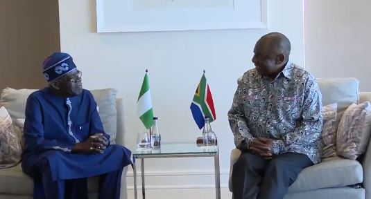 South African President, Cyril Ramaphosa, paid a visit to President Tinubu in his hotel on Thursday morning, June 20, for economic and diplomatic talks.