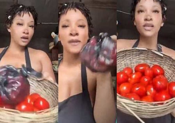 She revealed a basket of tomatoes bought for N5,000 and a small bag of fresh pepper costing N2,000.