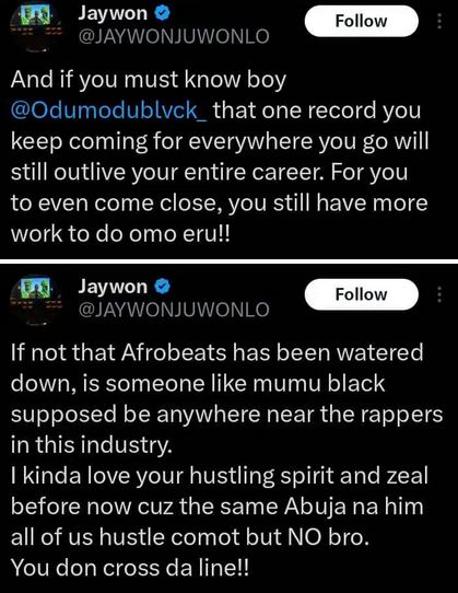 Jaywon asserted that even his single record would outlast Odumodu’s entire career and emphasized that Odumodu still has a long way to go to reach his level.