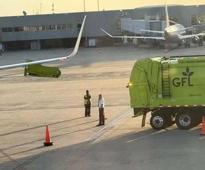 The collision caused the plane to shake and a piece of the garbage truck was left wedged in the wing of the plane.