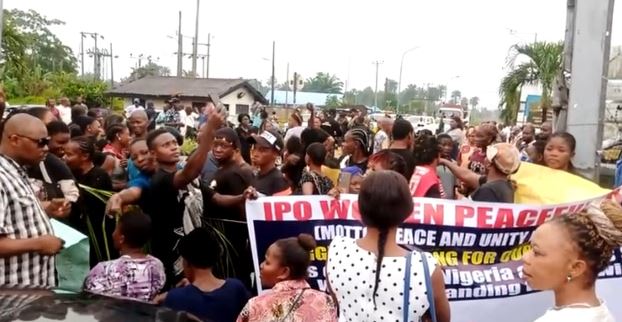 Some of the inscriptions seen on the placards and banners with them include ‘We Demand Our Citizens Rights’, ‘Ipo Women Peaceful Protest’, among others.