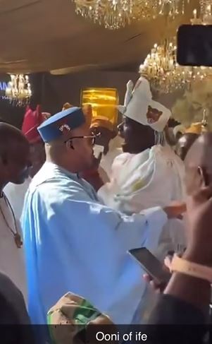 Below is a video showing the moment the Ooni of Ife made a royal entrance at Davido and Chioma’s wedding venue.
